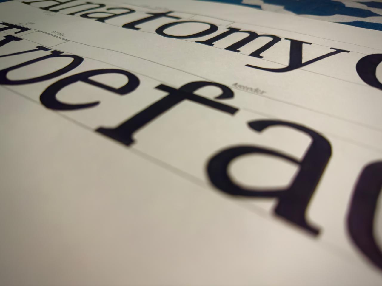 The Typography module was a comprehensive exploration of letterform construction, composition principles, and typographic expression across both manual and digital mediums. The course began with an in-depth anatomical study of a popular serif typeface, where we analyzed and documented the structural terminology and characteristics of each letterform to build a strong foundational understanding of typographic systems.